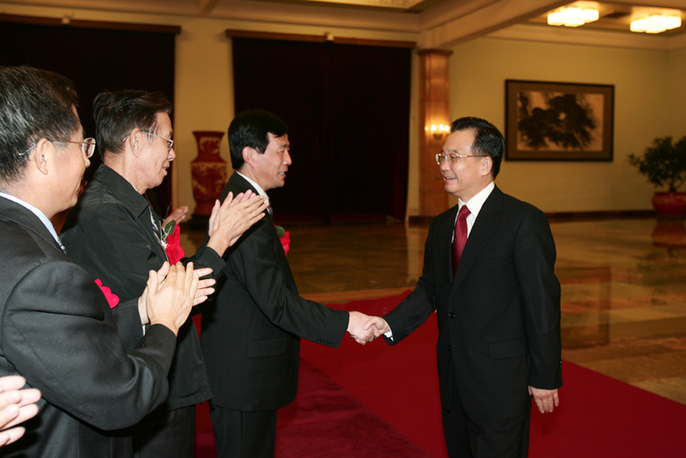第五届高等教育国家级教学成果奖颁奖,时任国务院总理温家宝接见王广谦教授等获奖代表