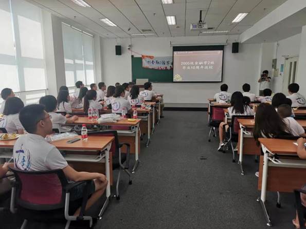 2019年8月31日上午,2005级金融2班本科校友毕业十周年返校座谈会在学院南路校区中财大厦案例教室4顺利举行。我院学生工作办公室主任王志梅,职业发展中心老师位锦与近30位校友欢聚一堂,追忆旧年往事,回味中财生涯。此次座谈会由中信建投证券股份有限公司投资银行部副总裁、2005级金融2班班长罗文超校友主持。