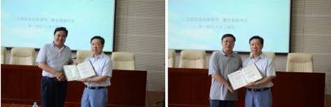 张礼卿院长向董宝青副司长(左)和王忠民董事长(右)颁发聘书