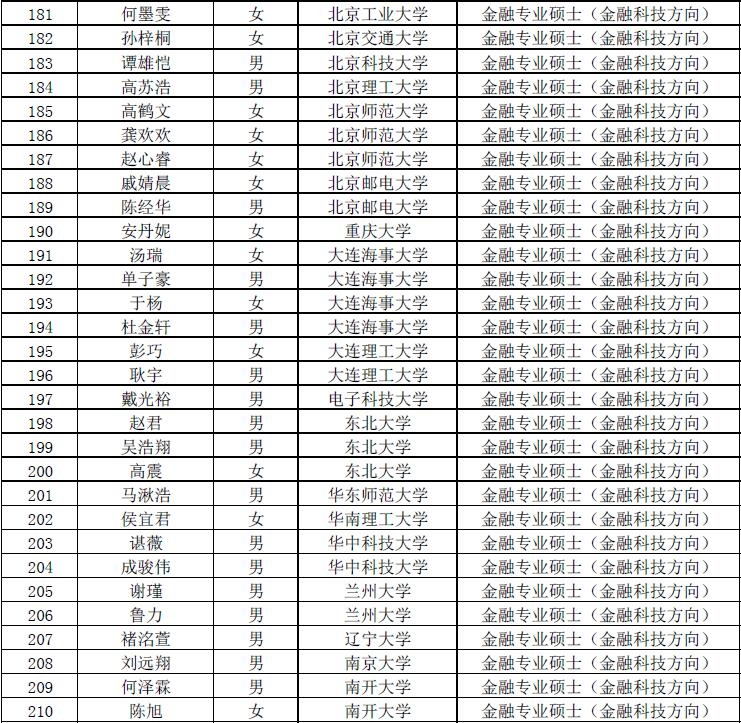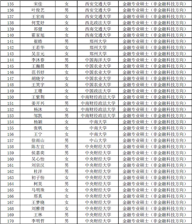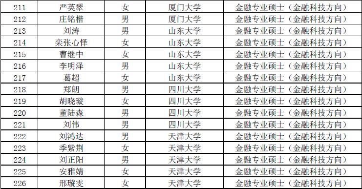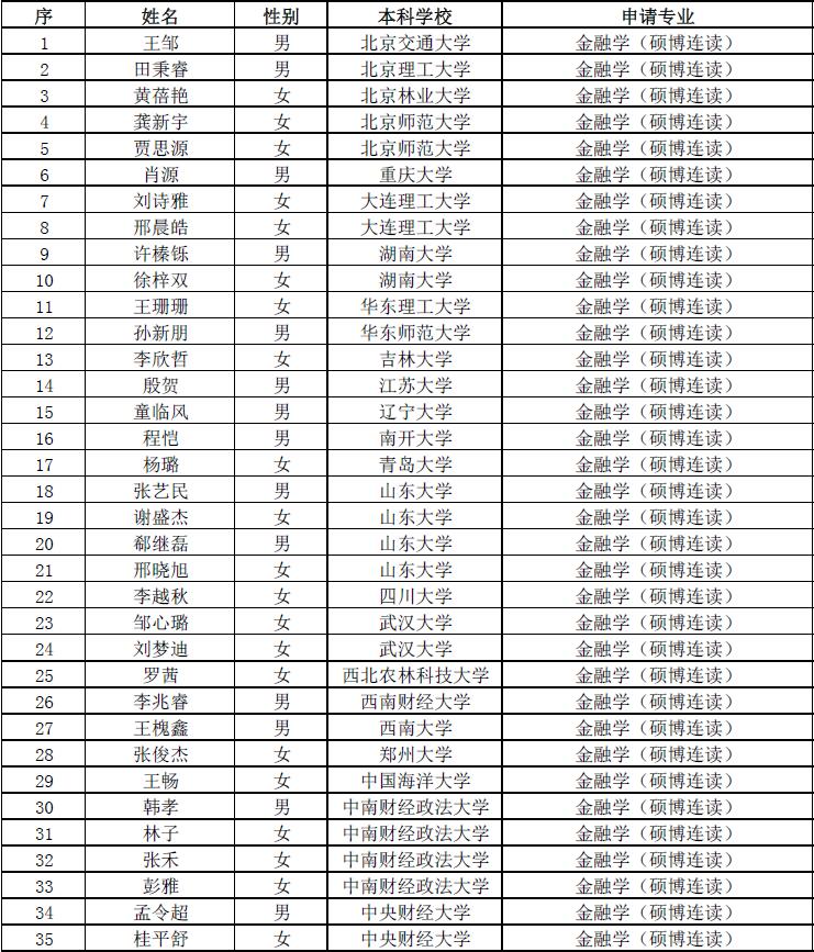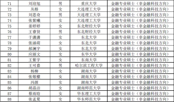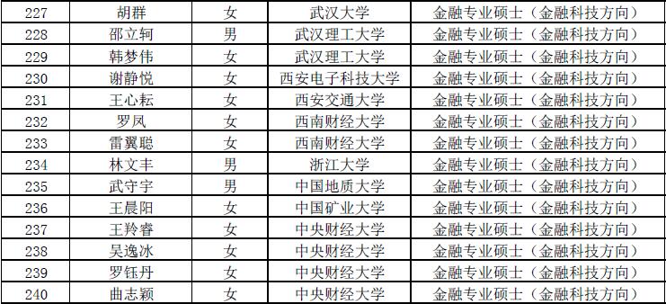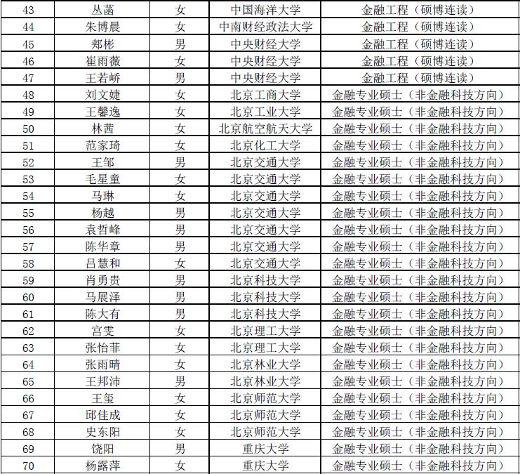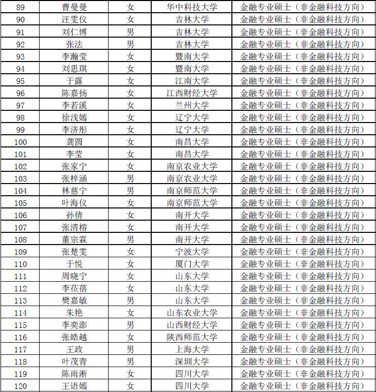 第七届“全国卓越金融学子夏令营”拟入营名单