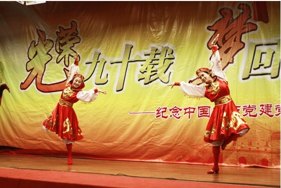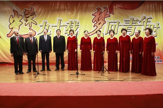 在之后的文艺表演中,老干部们展演了精彩纷呈的节目。舞蹈《和谐中国》向我们彰显了五十六个民族团结向上、开拓奋进的和谐形象;红歌《跟着共产党走》、《江山》高亢有力的歌声久久在舞台上回荡,将同学们带回了那个激情燃烧的岁月;诗朗诵《鲜红的党旗》展现了老干部们老当益壮、志在千里的豪情;尹世昌爷爷还饱含激情地讲述了他亲身经历开国大典时的感受。老干部们用美妙的舞姿、动听的歌声和雄浑有力的朗诵彰显了他们吃苦耐劳的奉献精神、不懈奋斗的刚强意志,向我们诠释了宝刀不老、青春永驻的真正含义。