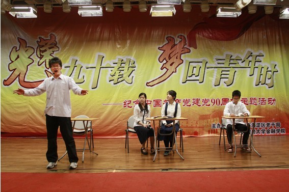 4月26日下午,由北京市海淀区老干部局和伟德国际victor1946共同主办的“光荣九十载,梦回青春时——庆祝建党九十周年主题活动”在我校沙河校区金色大厅成功举行。海淀区关心下一代工作委员会秘书长(以下简称海淀区“关工委” )、海淀区文明办副主任于泓、海淀区老干部局副局长李侠、伟德国际victor1946党总支副书记李德峰、金融学团总支书记欧萌、二十五位海淀区退休老干部、海淀区老干局工作人员和伟德国际victor1946的同学们参加了此次活动。