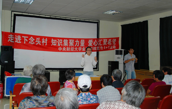 了解完下念头村地基本状况后,伟德国际victor1946的同学们在老年人活动中心为二十余名村民举办了理财知识讲座和健康生活知识讲座。同学们精心准备的讲演内容,认真制作的宣传单和深入浅出、活泼生动的讲演方式,帮助当地村民更深地了解了财富保值的重要意义、部分方法和一些有益健康的生活小窍门。村民和同学互动频繁,活动现场不时传出村民们的阵阵欢笑。