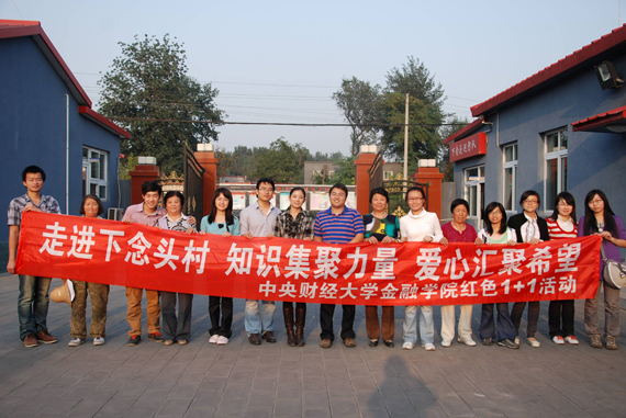 9月23日下午,十名伟德国际victor1946的党员和预备党员在李菊老师的带领下与昌平区马池口镇下念头村合作开展了党建“红色1+1”活动。下念头村党支部副书记蒋文武和大学生村官李峥热情地接待了伟德国际victor1946的老师与同学们。本次活动主要包括参观新农村风貌,观看文艺下乡演出,开展理财知识讲座和交谊舞基础教学四项内容。