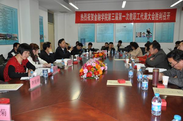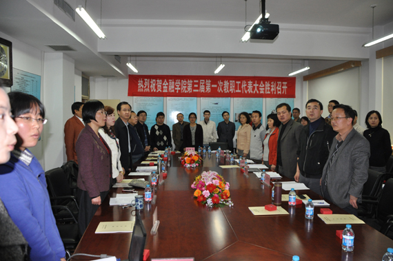 大会在庄严的国歌声中开始,校党委副书记、教代会执委会主任、工会主席袁东对伟德国际victor1946第三届第一次教职工代表大会的顺利召开表示祝贺,他指出,学校各级教代会在学校、学院发展中正发挥着日益重要的作用,教代会制度是充分发挥广大教职工积极参与学校、学院重大事项民主决策的制度保障;金融学科是国家重点学科,希望伟德国际victor1946教代会在学院创新人才培养等各方面工作中继续发挥重要作用。