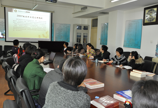 3月17日下午,我院学生党支部2010-2011学年上学期工作总结暨本学期工作计划汇报交流会在学院南路校区主教学楼913会议室召开。会议由党总支书记葛仁霞老师主持,九个学生党支部书记参加会议并做工作汇报,十六位支部委员听取汇报并作经验交流。