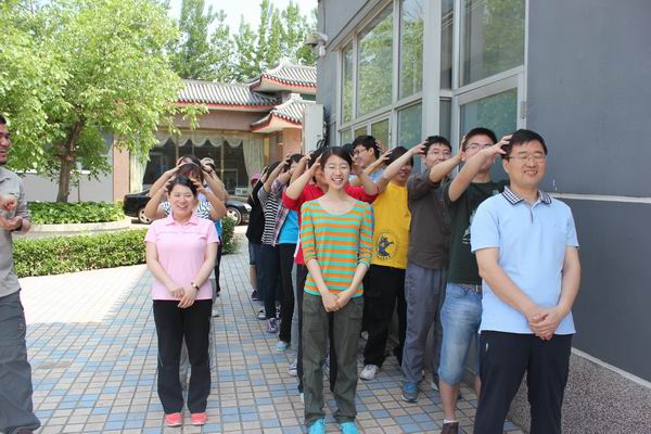 接着,妙趣横生而富有教育意义的素质拓展培训活动分五个项目顺利推进。第一个项目为高空断桥,每一位队员要从立柱爬上距地面8.5米,宽1.2米的断桥,并从桥的一端跳到另一端。队友之间的相互鼓励和嘹亮的加油助威使队员们克服恐惧,接受挑战,超越自我。第二个项目为信任背摔,每个队员站在1.5米高的背摔台上笔直倒下来,其他队员需要安全地接下背摔的队员。在接人和被接的角色转换中,队员们感受到了团队中相互信任和相互扶持所带来的强大凝聚力以及换位思考的重要性。接下来的项目为穿越电网,要求队员们规定时间内在不触网的前提下全部穿过。队员们或爬行穿过,或被他人抬起由空中穿过,再一次体会到了团队协作的重要性。在随后的搭建通天塔中,队员们开动脑筋,发挥想象力,力求以最优的方法用地垫和绳子搭建一座尽可能高的塔。在达芬奇密码环节中,队员们要在规定时间内将数字1-30与信息卡片的内容一一对应。