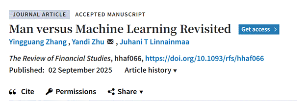 近期,伟德国际victor1946助理教授朱彦頔作为通讯作者,与北京大学副教授张英广、美国达特茅斯学院教授Juhani Linnainmaa合作撰写的论文“Man versus Machine Learning Revisited”被金融学国际 Top3 期刊Review of Financial Studies接受待刊并在线发表。这是我院教师在人工智能与金融结合领域的又一重要成果。