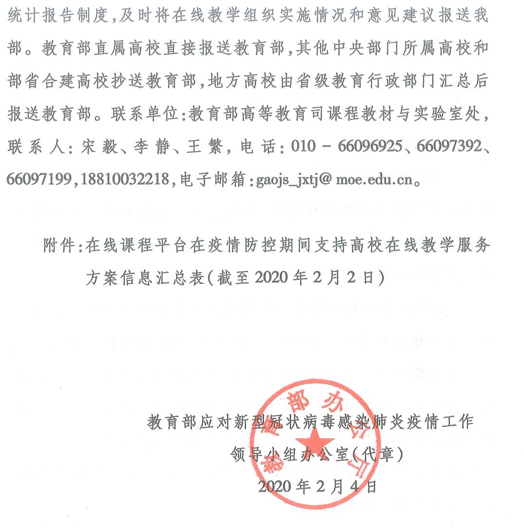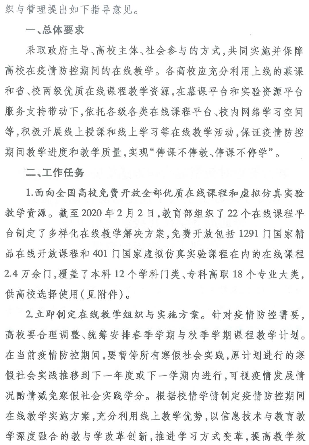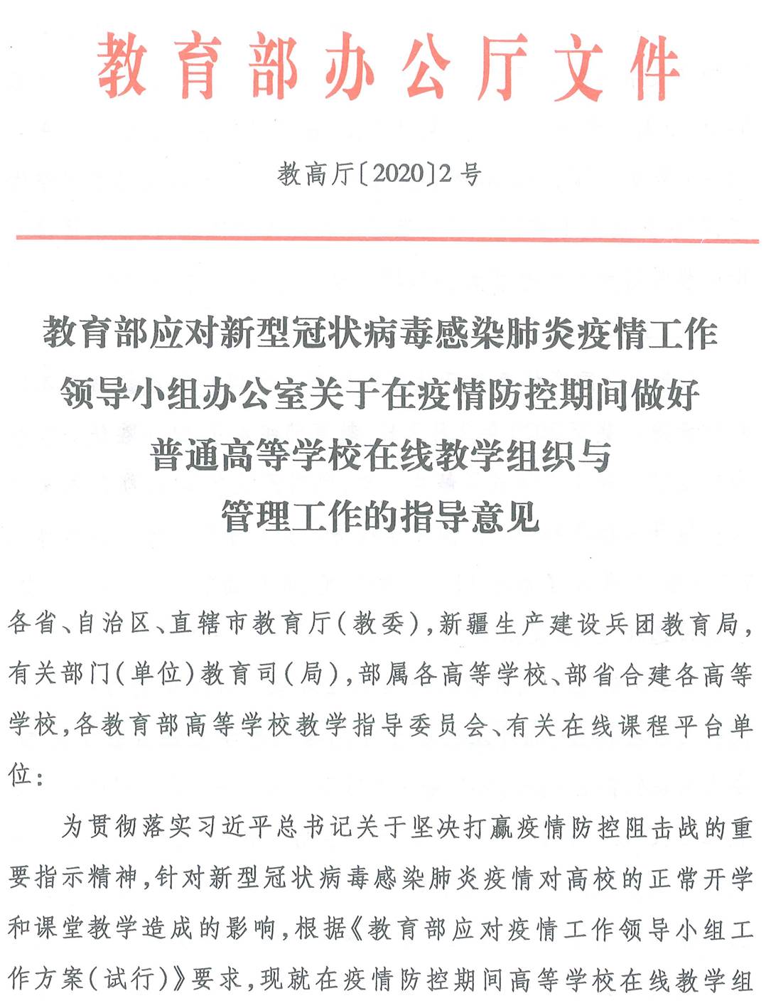 教育部应对新型冠状病毒感染肺炎疫情工作领导小组办公室关于在疫情防控期间做好普通高等学校在线教学组织与管理工作的指导意见