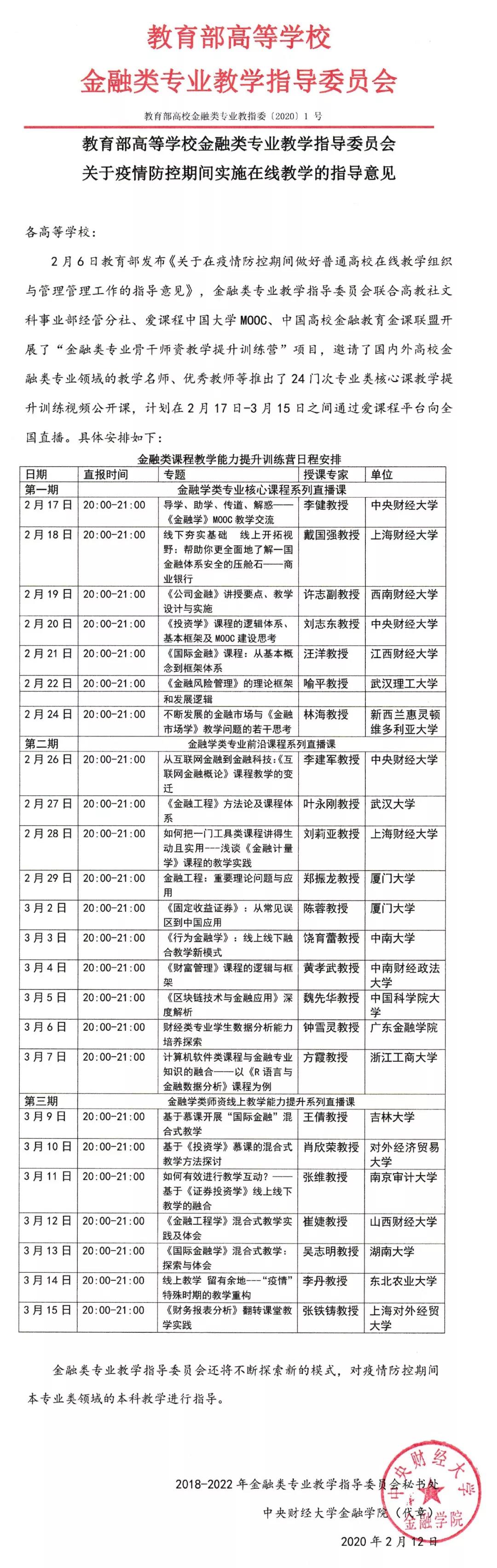 教育部⾼等学校⾦融类专业教学指导委员会关于疫情防控期间实施在线教学的指导意⻅