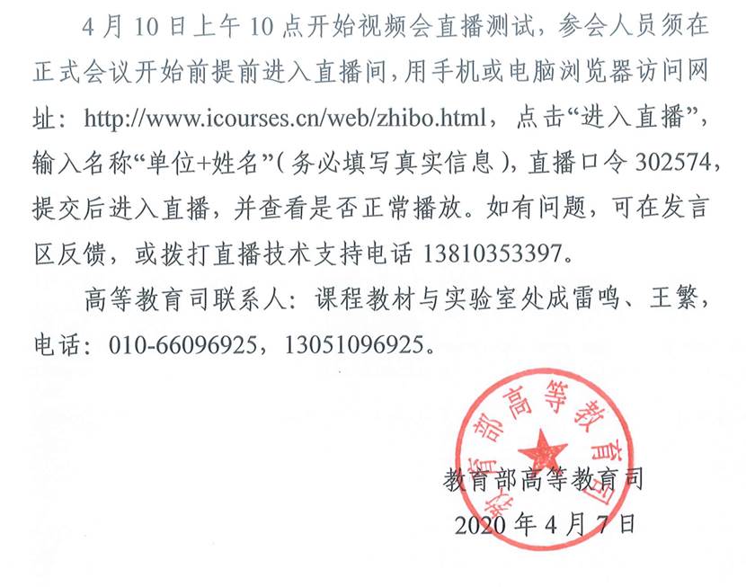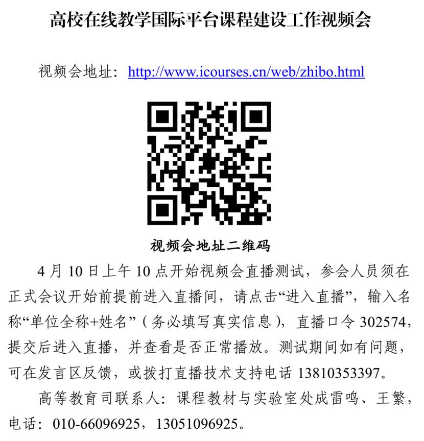 教育部高等教育司关于召开高校在线教学国际平台课程建设工作视频会的通知