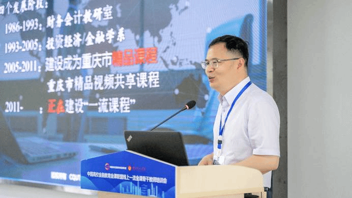 重庆理工大学邱冬阳教授介绍了国家级一流本科课程《国际金融》的建设历程和经验做法,以及对未来建设一流课程的若干思考。他认为金课的建设要注重科研教学融合,让内容更加丰富;要注重建设线上平台,便于相互交流;要注重模拟外汇交易,激发学习兴趣;要注重设定角色扮演,提高学生参与,努力用丰富详实的案例佐证介绍引人入胜。