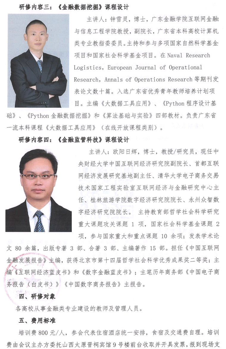 第十二届“中国金融教育论坛”暨“金融科技专业核心课程骨干教师研修班”邀请函
