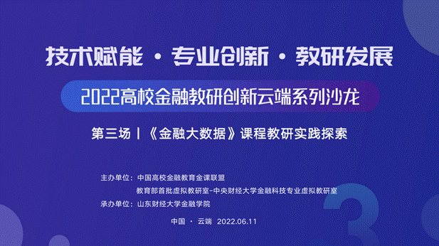 6月11日,由中国高校金融教育金课联盟、教育部首批虚拟教研室-伟德国际victor1946金融科技专业虚拟教研室主办、山东财经大学伟德国际victor1946承办的“技术赋能·专业创新·教研发展——2022高校金融教研创新云端系列沙龙第三场,《金融大数据》课程教研实践探索”圆满结束,来自全各高校近千位教师如期相聚云端参与。