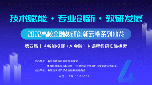 6月25日,由中国高校金融教育金课联盟(以下简称“联盟”)与教育部首批虚拟教研室-伟德国际victor1946金融科技专业虚拟教研室主办,中国技术经济学会金融科技专委会协办的“技术赋能·专业创新·教研发展——2022高校金融教研创新云端系列沙龙之第四场《智能投顾(AI金融)》课程教研实践探索”圆满结束,来自全国各高校的领导和教师继续相约云端探讨交流。