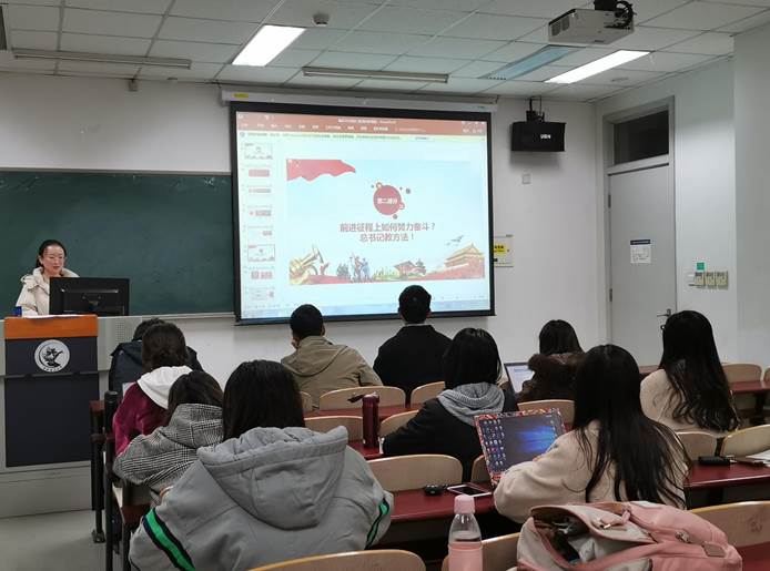 党课伊始,庞歌桐同志首先梳理了习近平总书记讲话的逻辑框架,让全体党员同志对此有一个初步的整体印象,然后以“前进征程上如何努力奋斗”为出发点,深入剖析了习近平总书记的讲话内容,她提到,习近平总书记的讲话内容用三个关键词——道路、团结、奋斗,通过三个时间坐标——昨天、今天明天,勾勒了中国发展,用三个“万岁”激发了人民信心,并启示我们前进征程上应做好五个“坚持”,即坚持中国共产党领导,坚持人民主体地位,坚持中国特色社会主义道路,坚持“和平统一、一国两制”的方针和坚持和平发展道路。随后,庞歌桐同志从国庆阅兵中“战旗中的红色基因”、“方队中的导弹绿”、“守护和平的维和蓝”、“多彩中的能力体现”四个方面,综合阐述了我国军队的建设成果,以习近平总书记国庆讲话中突出的中国军队的人民性、防御性和和平性的精准定位,让大家真切的感受到了中国军队的“硬”实力,激发起大家对人民子弟兵的追崇和热爱,大家纷纷表示,今后会以更加崭新和积极的面貌,认真学习专业知识,将中国军队精神融入到日常学习生活中,努力将自己打造成为对党对社会对人民更加有用的人才!最后,本次微党课以总书记金句学习为尾声,通过大家轮流朗读总书记金句的形式,达到了学习和体会的双重效果。