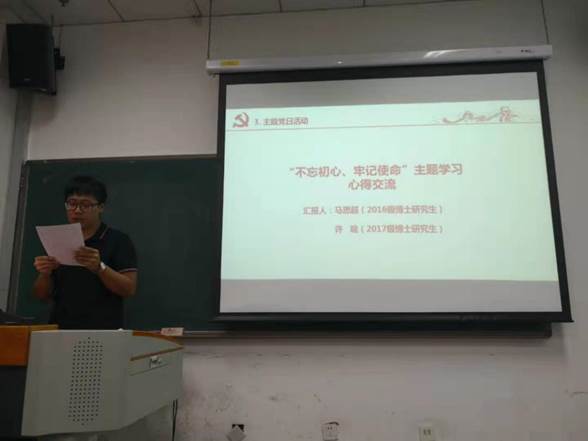 10月9日,伟德国际victor1946博士生党支部在伟德国际victor1946沙河校区主教303教室召开 “不忘初心、牢记使命”主题教育学习分享会,加强党员之间的学习与交流。伟德国际victor1946博士生党支部正式党员、预备党员参加了本次支部大会,入党积极分子许晗同学、马思超同学列席会议。本次会议由支部书记李俊成同志主持。
