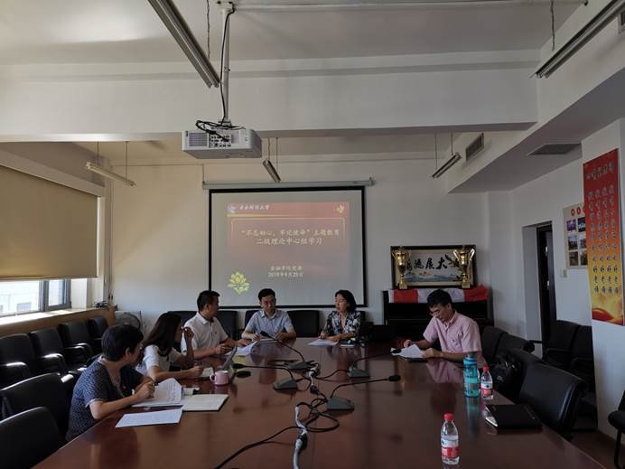 9月25日下午,伟德国际victor1946党委“不忘初心、牢记使命”主题教育二级理论中心组学习会在学院南路校区主教913会议室召开。专题学习习近平总书记在中央政治局“牢记初心使命,推进自我革命”第十五次集体学习的讲话,深入领会“不忘初心、牢记使命”主题教育精神实质,学院二级理论中心组成员参加会议,会议由院党委书记毛静主持。