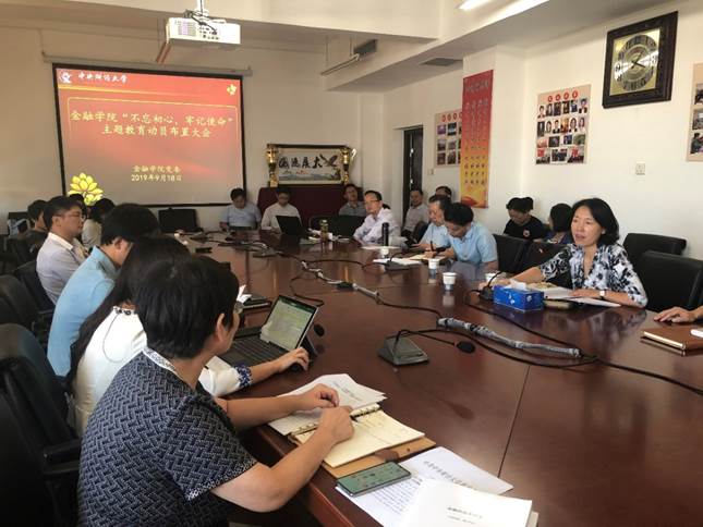 毛静同志传达了校党委书记何秀超和教育部第二巡回指导组副组长万志建同志的讲话精神,并对学院开展“不忘初心、牢记使命”主题教育提出了三点要求,第一,要认真贯彻落实《伟德国际victor1946“不忘初心、牢记使命”主题教育实施方案》的部署,有步骤有计划地开展主题教育,增强主题教育的思想自觉性和行动自觉性。第二,要将主题教育活动与加强学院党建工作和建设世界一流金融学科相结合。第三,要扎实推进主题教育各项工作,确保取得预期成效。