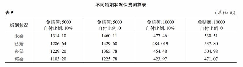 从下面的图表可以看出年龄、地区、性别、社保类型、婚姻、并发症、重点合并症都会影响最后的保费测算结果。