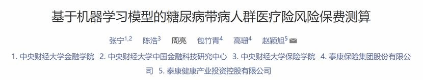 这篇文章是在“医险创新”的大背景下聚焦于糖尿病带病人群医疗风险保费测算,是中国金融科技研究中心一系列健康财富融合研究的一部分。