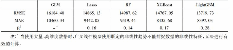本文使用的模型是:广义线性模型、LasooRFXGBoostLightGBM