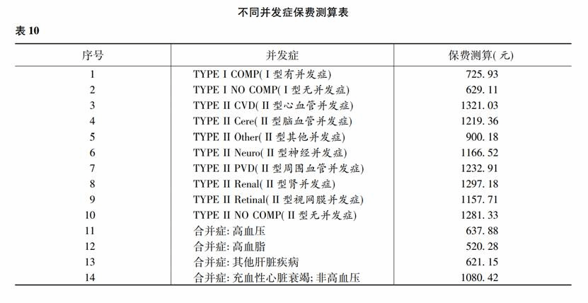 1214给出了以某省为例的带有糖尿病并发症的保费综合测算结果。该结果测算的保费为精算纯保费。