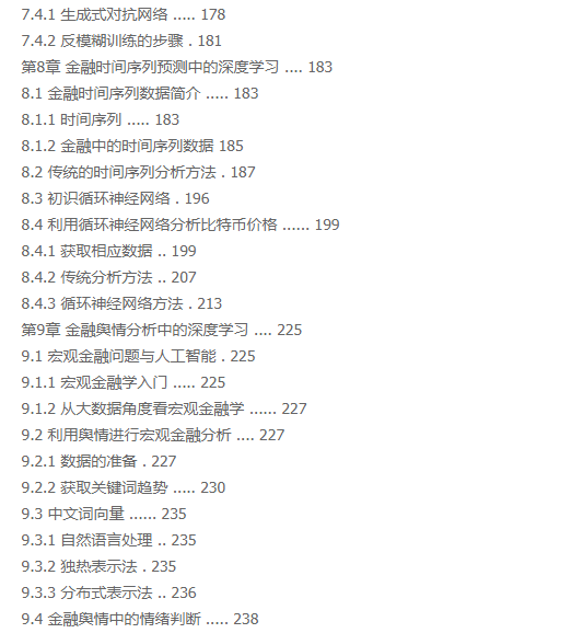 本书介绍了金融领域中的深度学习及其应用,主要内容包括: 金融与金融市场,Python入门,金融和深度学习的数学基础,深度学习平台的搭建,金融数据的获取,欺诈行为识别,非结构化金融客户信息识别,金融安全与深度学习,金融时间序列预测与深度学习,金融舆情分析与深度学习,金融客户推荐与深度学习等。