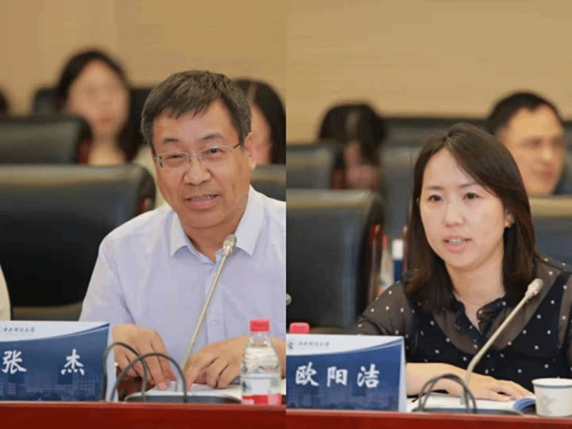 中国人民大学国际货币研究所所长张杰教授(左)和人民日报经济社会部商贸采访室欧阳洁副主编(右)发表评论